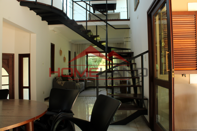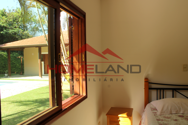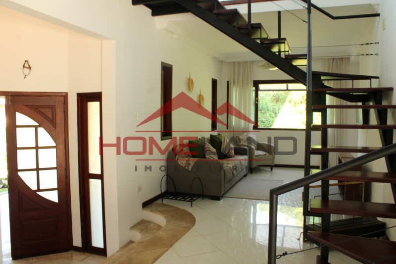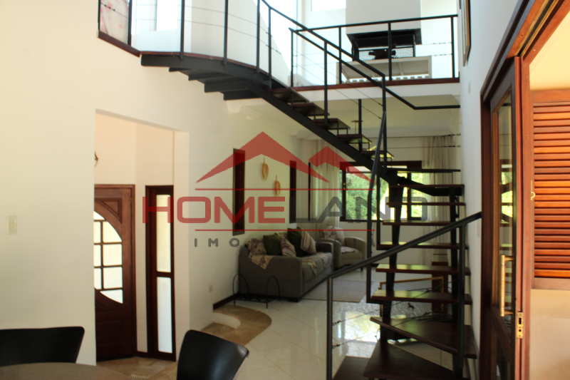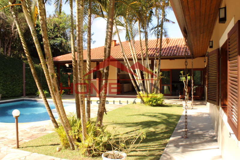 Casa térrea com somente um ambiente em mezanino sendo uma sala de lareira com vista privilegiada. São cinco suítes, sendo uma de prestador de serviço. Sala com três ambientes, cozinha integrada, lavabo e área de lazer com piscina, churrasqueira e muita privacidade. Garagem coberta para dois carros , gramado plano , próprio para quadras esportivas.