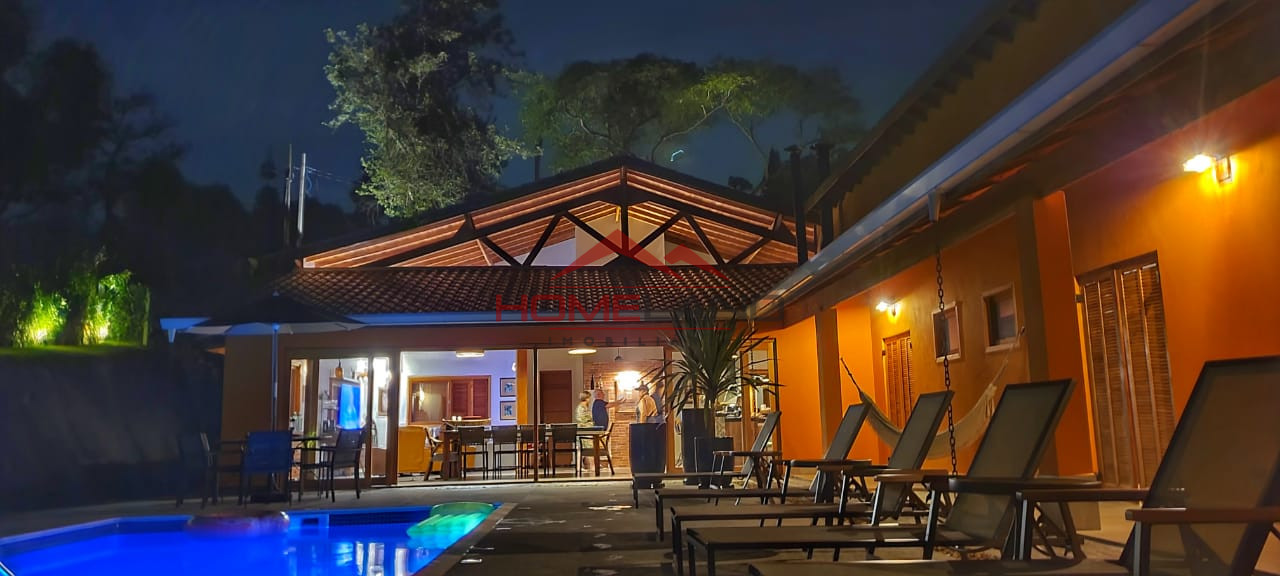 Localizada em um terreno espaçoso e tranquilo, esta casa térrea oferece o equilíbrio perfeito entre conforto e sofisticação. Com uma arquitetura moderna e elegante, esta residência tem quatro suítes, cada uma delas com porta balcão e abertura para a piscina, realçada por luzes de LED que criam uma atmosfera relaxante e acolhedora durante as noites. A área gourmet é integrada com a sala de jantar, sala de estar e cozinha toda equipada em ambientes amplos e bem planejados. Despensa, lavanderia e suíte para funcionário. O pergolado, adornado com vegetação exuberante, oferece um espaço charmoso para desfrutar de momentos ao ar livre e uma horta completa o cenário. Árvores frutíferas, espaço para fogueira, belo paisagismo . Esta construção nova representa muito conforto e bom gosto, proporcionando uma experiência única para toda a família.