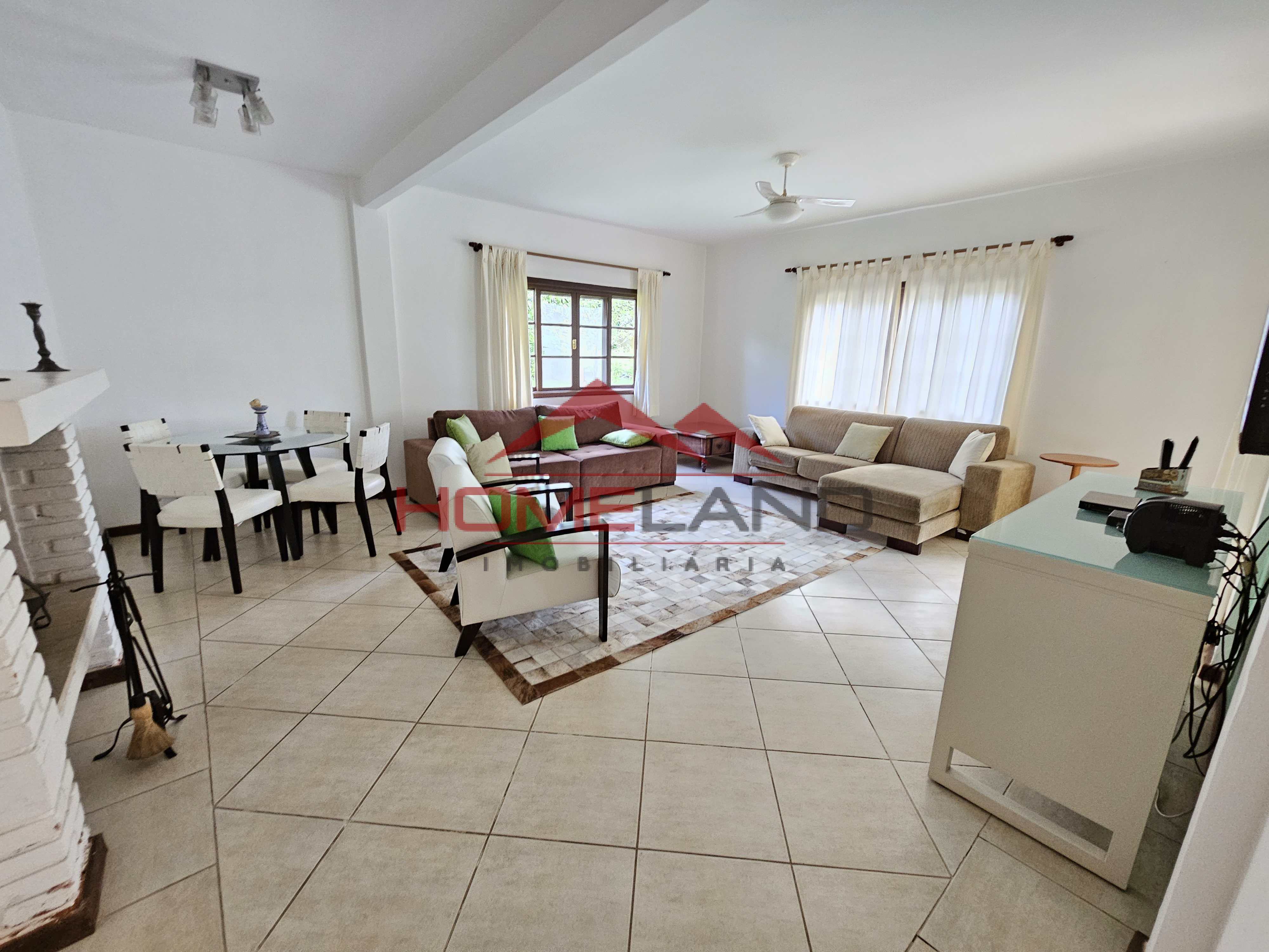 Casa totalmente térrea, conta com sala 3 ambiente, mais uma ampla sala privativa com lareira, lavabo, cozinha com acesso à área gourmet, piscina.