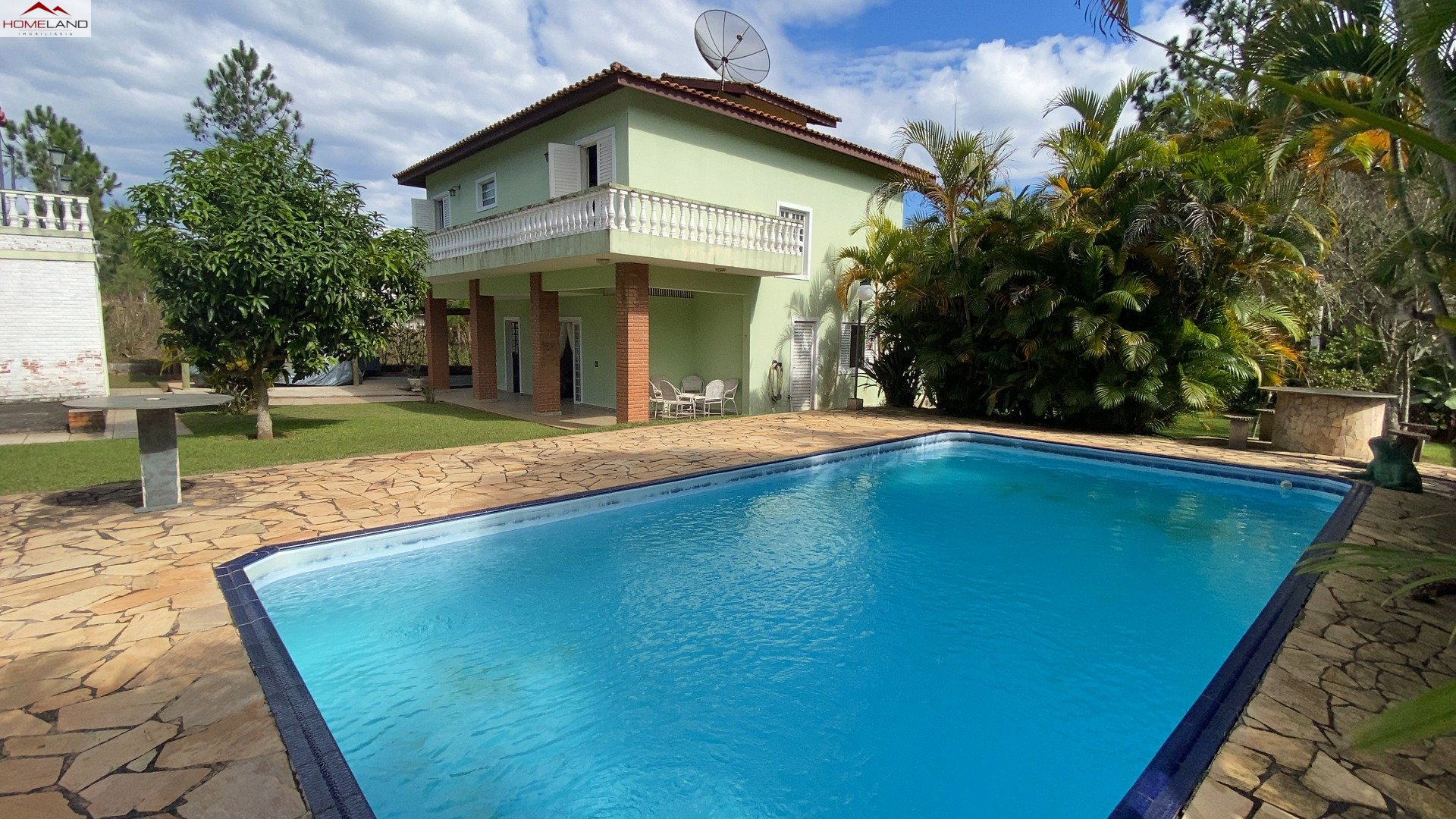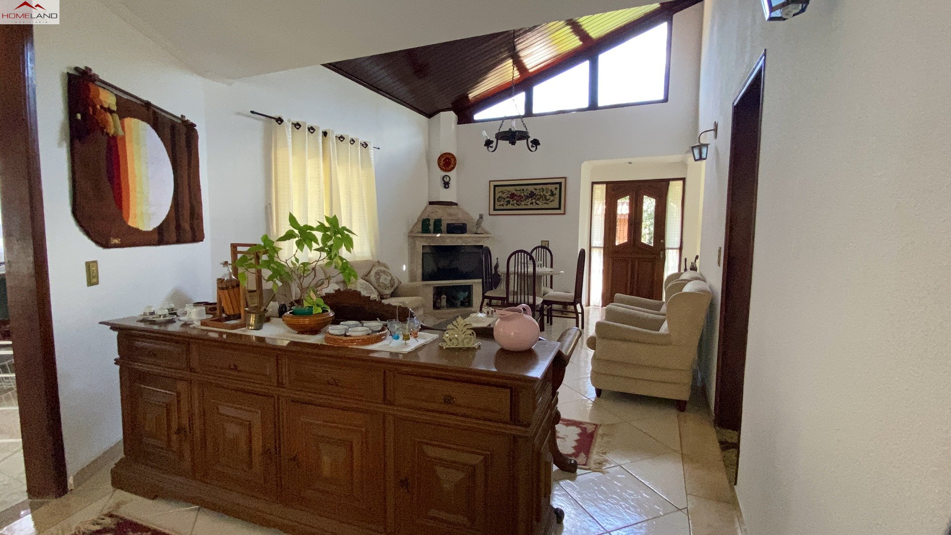 Casa com 4 dormitórios, sendo 2 suítes no andar superior e, quartos com um banheiro no térreo, sala de lareira, sala de jantar, ampla cozinha, lavado, área de serviço, área gourmet piscina e amplo galpão.