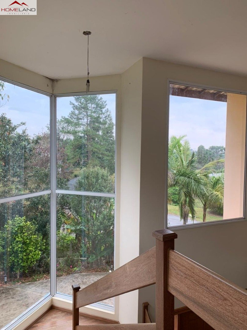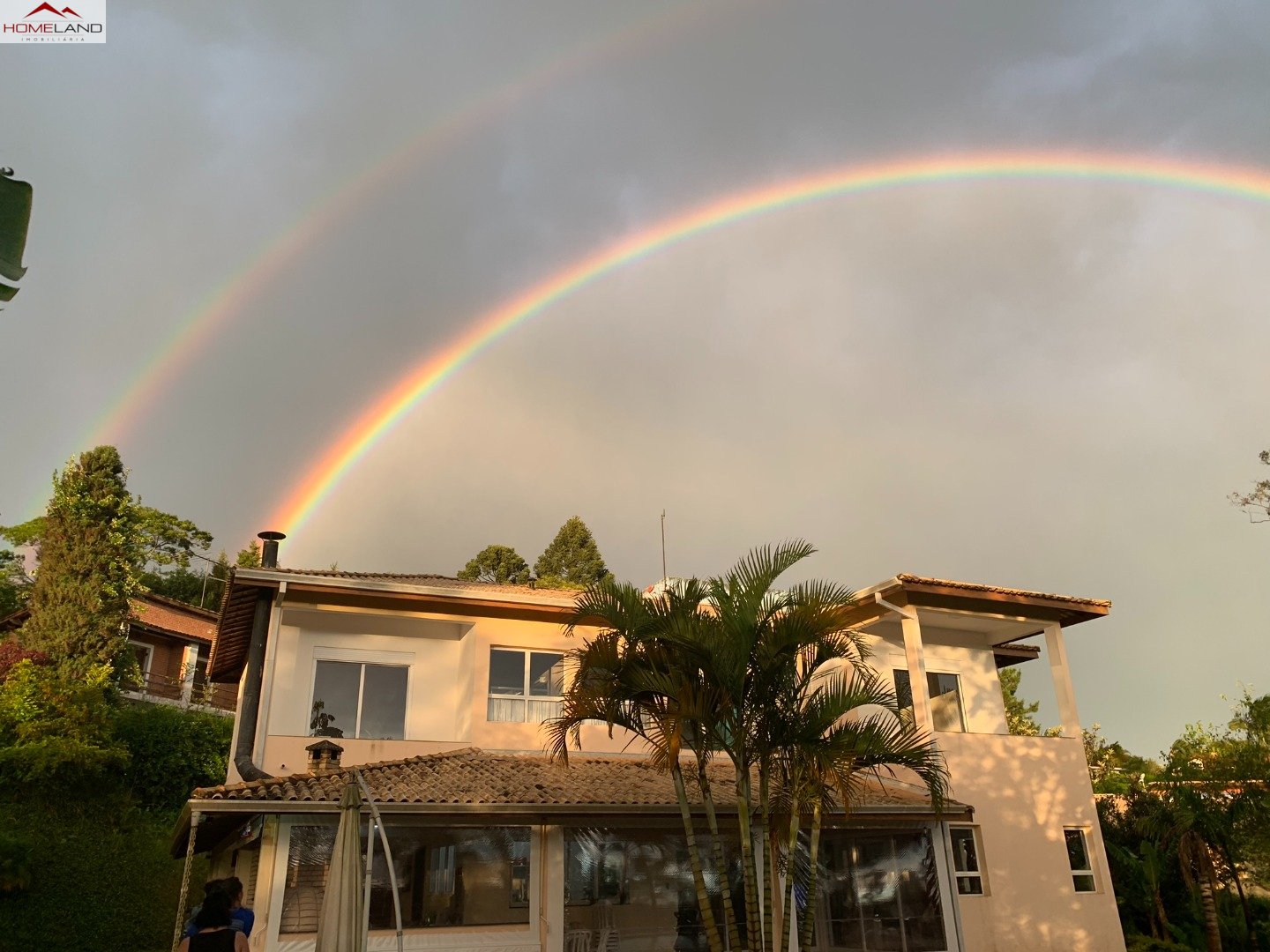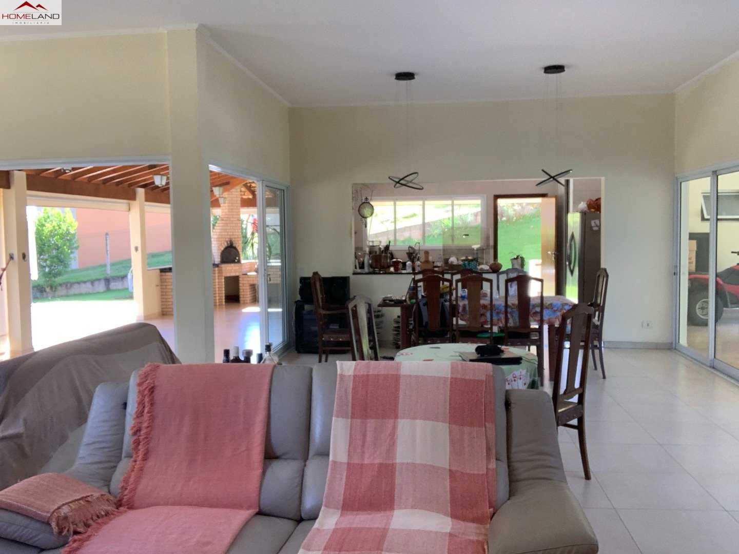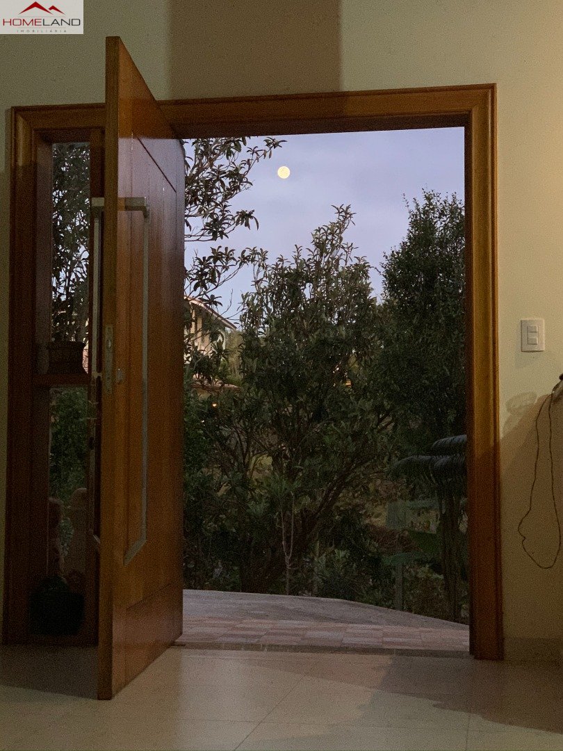 Linda casa em local alto com vista privilegiada, nova, com 437 m² de área construida e 1.270m² de terreno. O imóvel recém construído possui 3 amplas suítes com closet, dois dormitórios e um banheiro no piso superior. Piso inferior: sala espaçosa, muito iluminada, com 3 ambientes, lareira, varanda, cozinha integrada, área de serviço Ampla área gourmet com churrasqueira, forno à lenha, adega, sauna, banheiro. Piscina com raia cercada por belo jardim Garagem coberta para 2 carros, depósito e pomar. Vale a pena agendar uma visita!