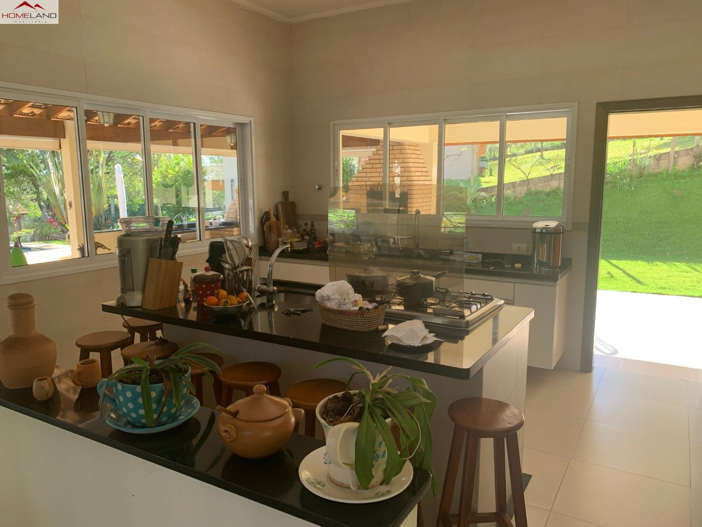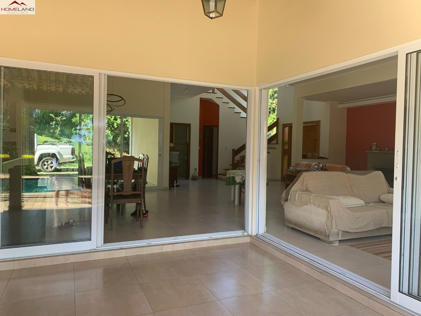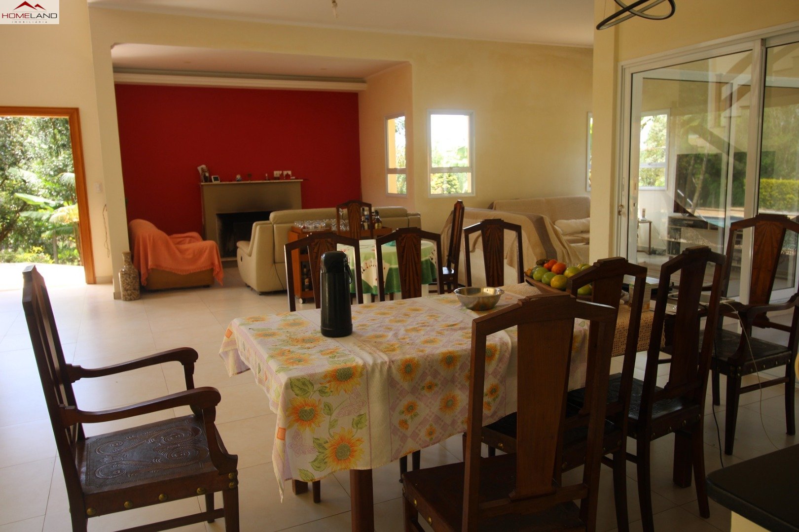 Linda casa em local alto com vista privilegiada, nova, com 437 m² de área construida e 1.270m² de terreno. O imóvel recém construído possui 3 amplas suítes com closet, dois dormitórios e um banheiro no piso superior. Piso inferior: sala espaçosa, muito iluminada, com 3 ambientes, lareira, varanda, cozinha integrada, área de serviço Ampla área gourmet com churrasqueira, forno à lenha, adega, sauna, banheiro. Piscina com raia cercada por belo jardim Garagem coberta para 2 carros, depósito e pomar. Vale a pena agendar uma visita!