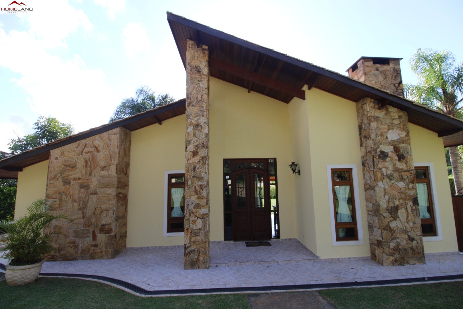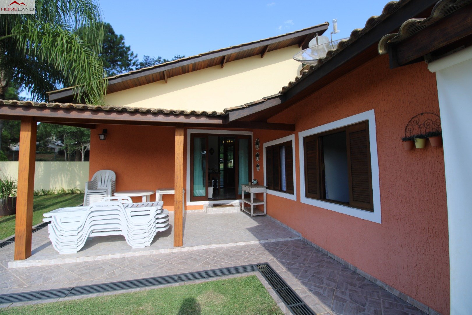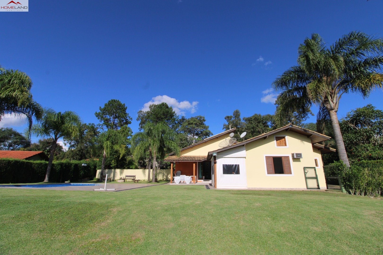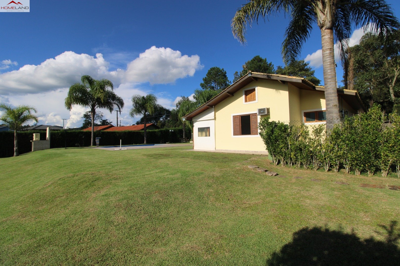 Casa térrea à venda com uma suíte e dois quartos, sala com lareira, sala de jantar. Cozinha, lavanderia e banheiro/depósito Terreno gramado, plano, boa incidência de sol, piscina e varanda.