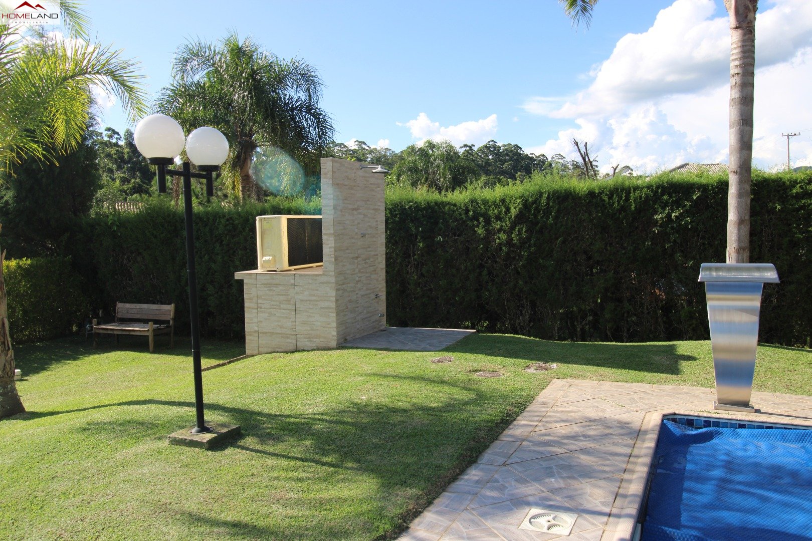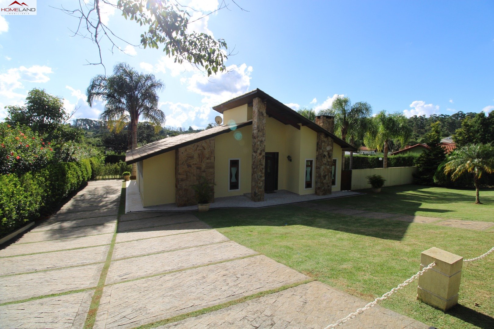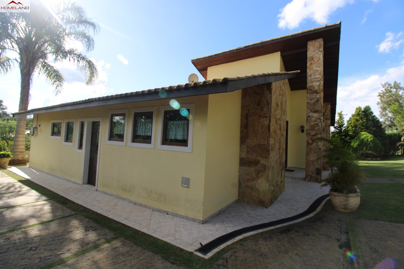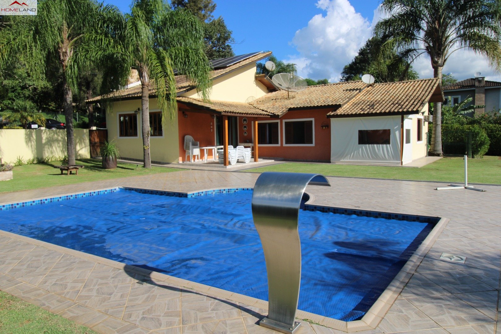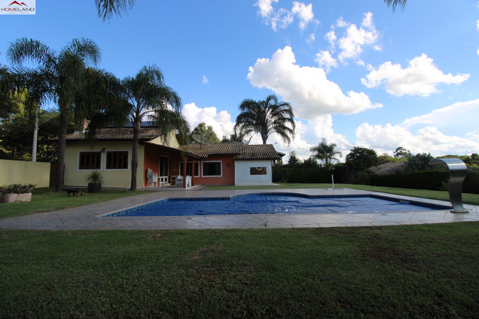 Casa térrea à venda com uma suíte e dois quartos, sala com lareira, sala de jantar. Cozinha, lavanderia e banheiro/depósito Terreno gramado, plano, boa incidência de sol, piscina e varanda.