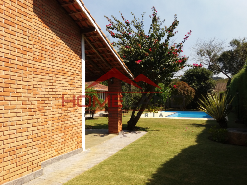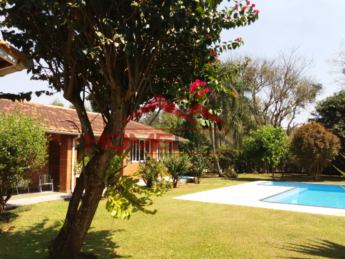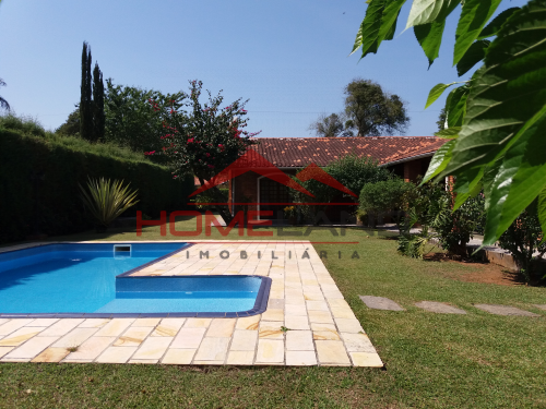Piscina, gramado, terreno plano, garagem com cobertura.