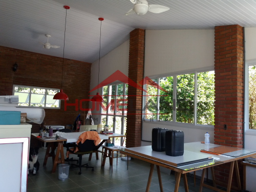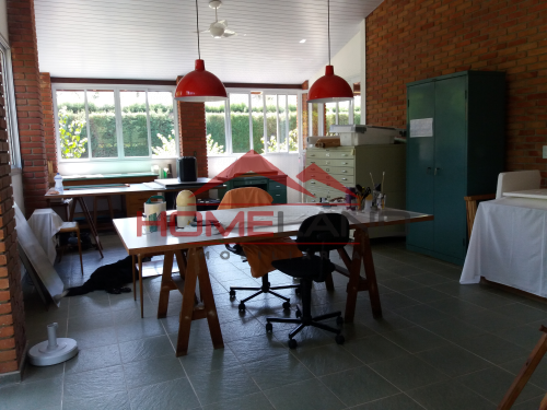 Ateliê grande , com entrada independente, mas fazendo parte do corpo da casa, integrado ao jardim, com banheiro, podendo ser utilizado como área de lazer, churrasqueira, jardim de inverno.