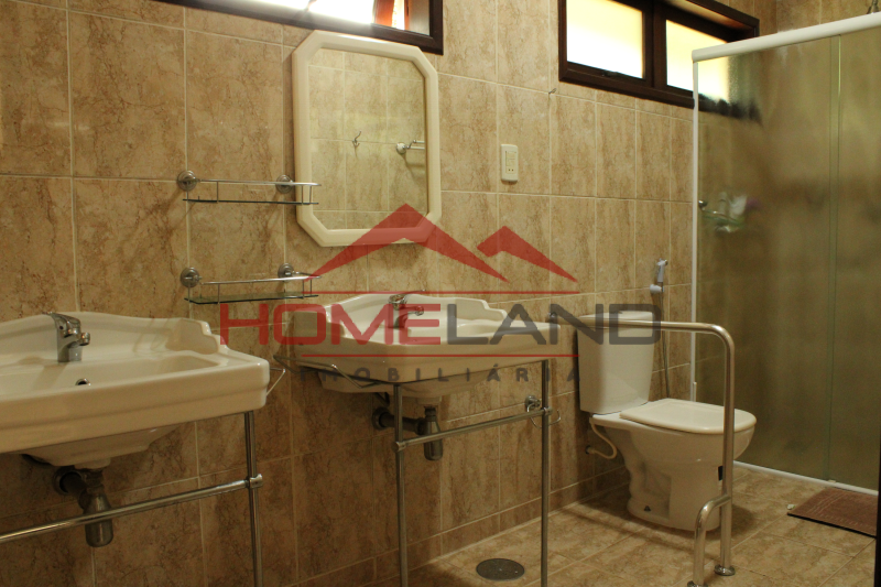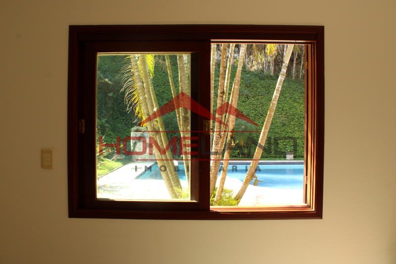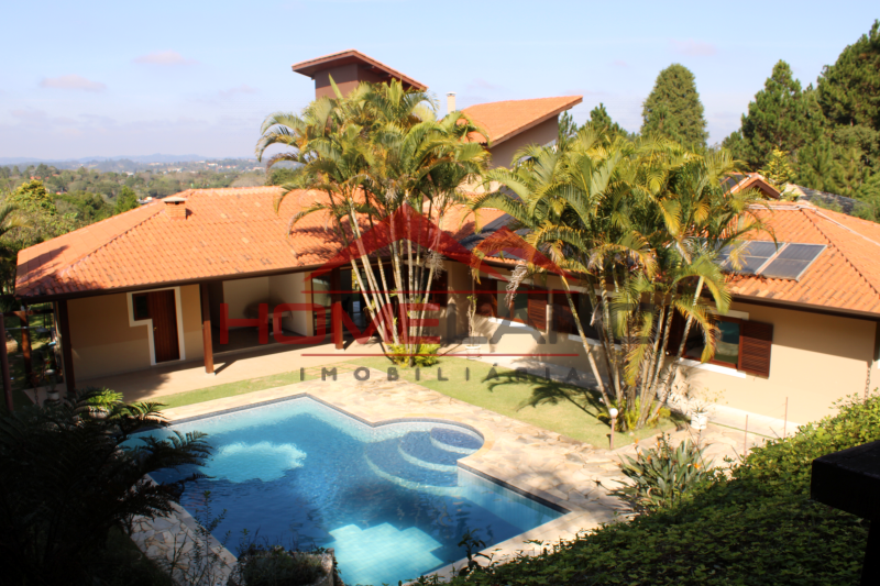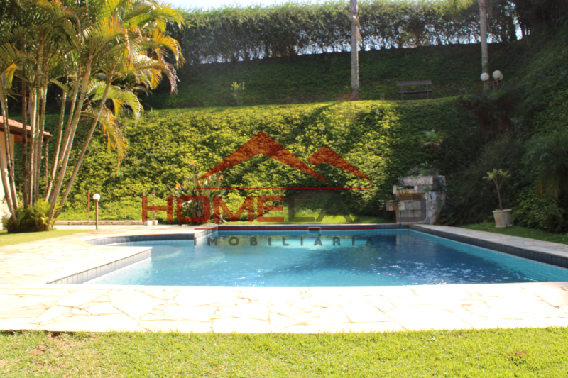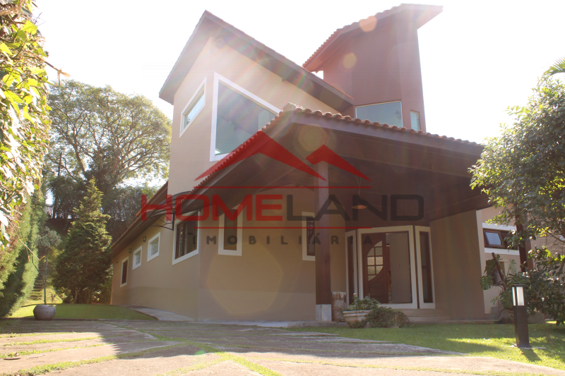 Casa térrea com somente um ambiente em mezanino sendo uma sala de lareira com vista privilegiada. São cinco suítes, sendo uma de prestador de serviço. Sala com três ambientes, cozinha integrada, lavabo e área de lazer com piscina, churrasqueira e muita privacidade. Garagem coberta para dois carros , gramado plano , próprio para quadras esportivas.