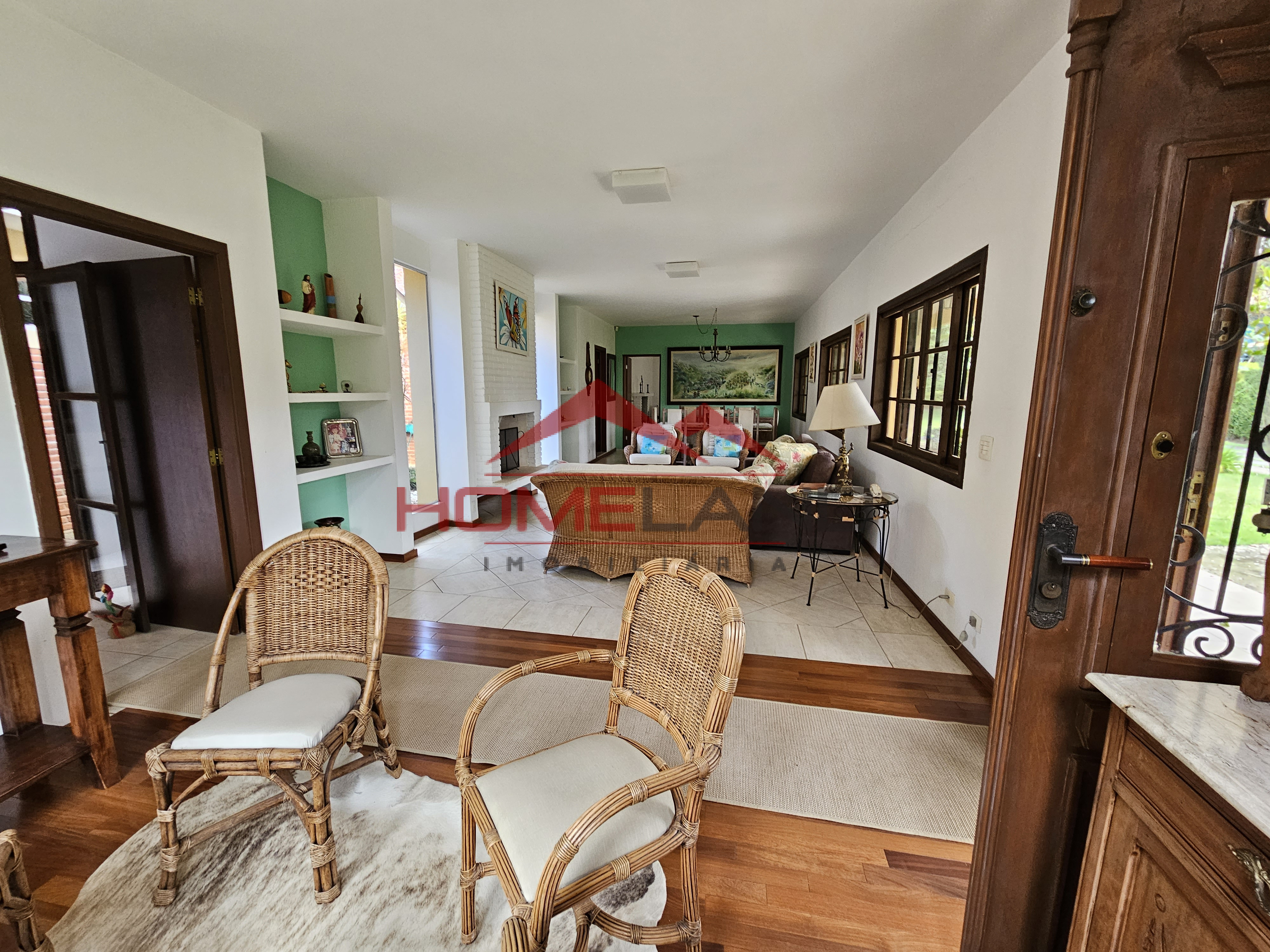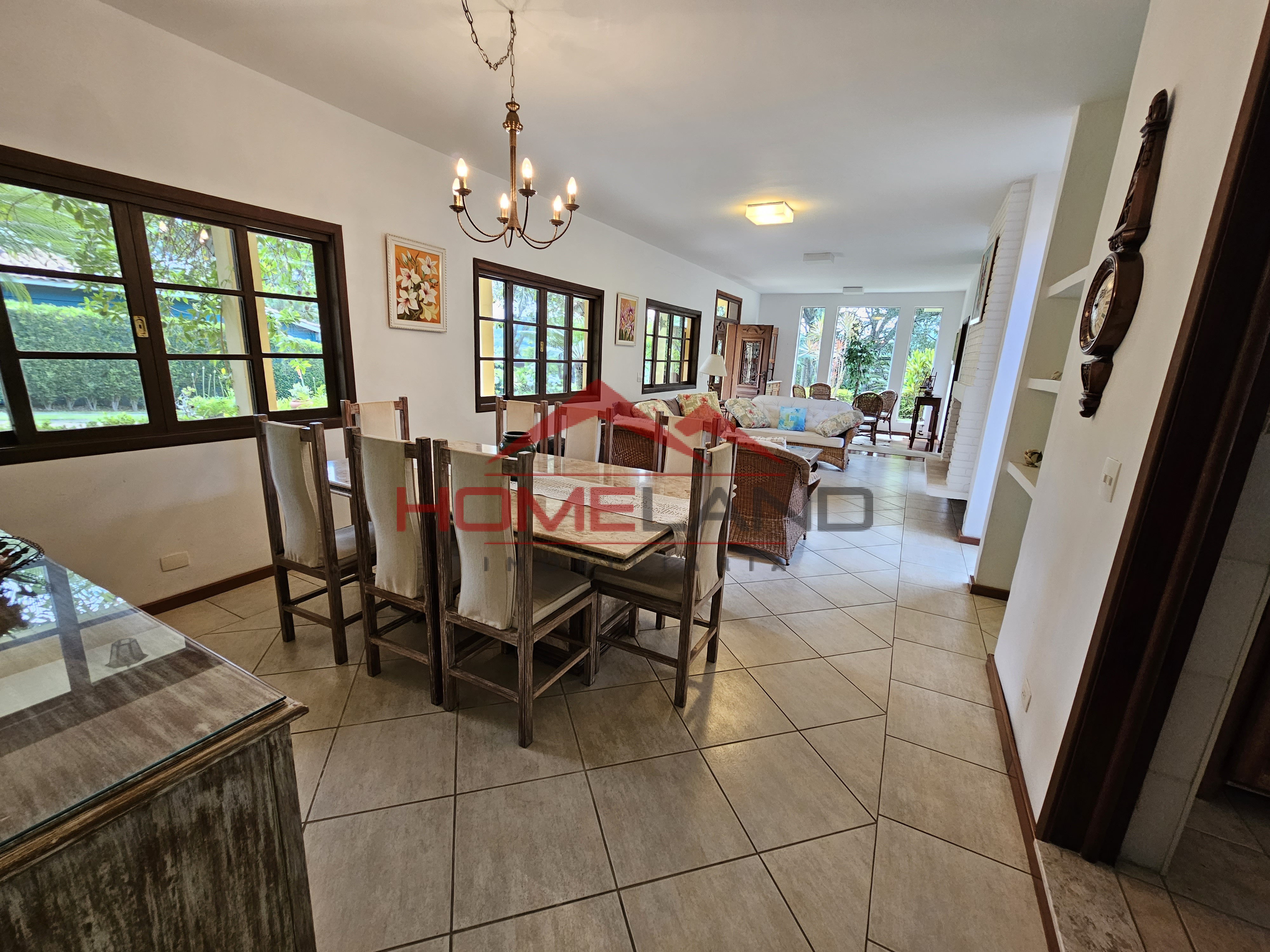 Casa totalmente térrea, conta com sala 3 ambiente, mais uma ampla sala privativa com lareira, lavabo, cozinha com acesso à área gourmet, piscina.