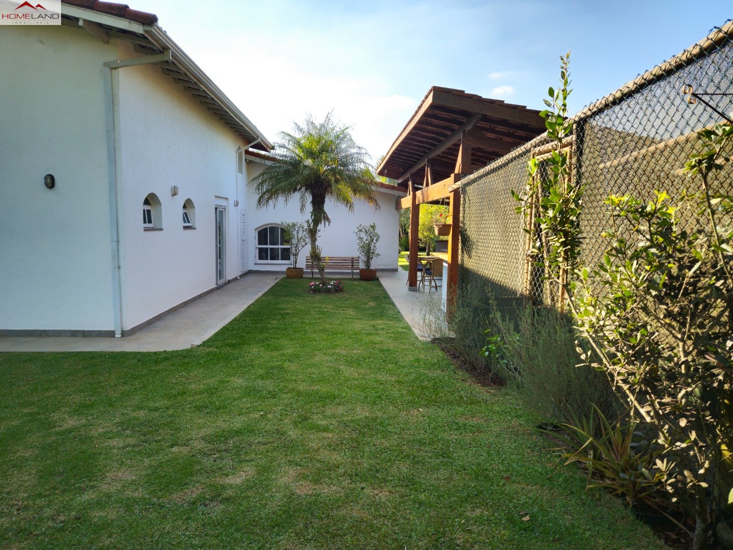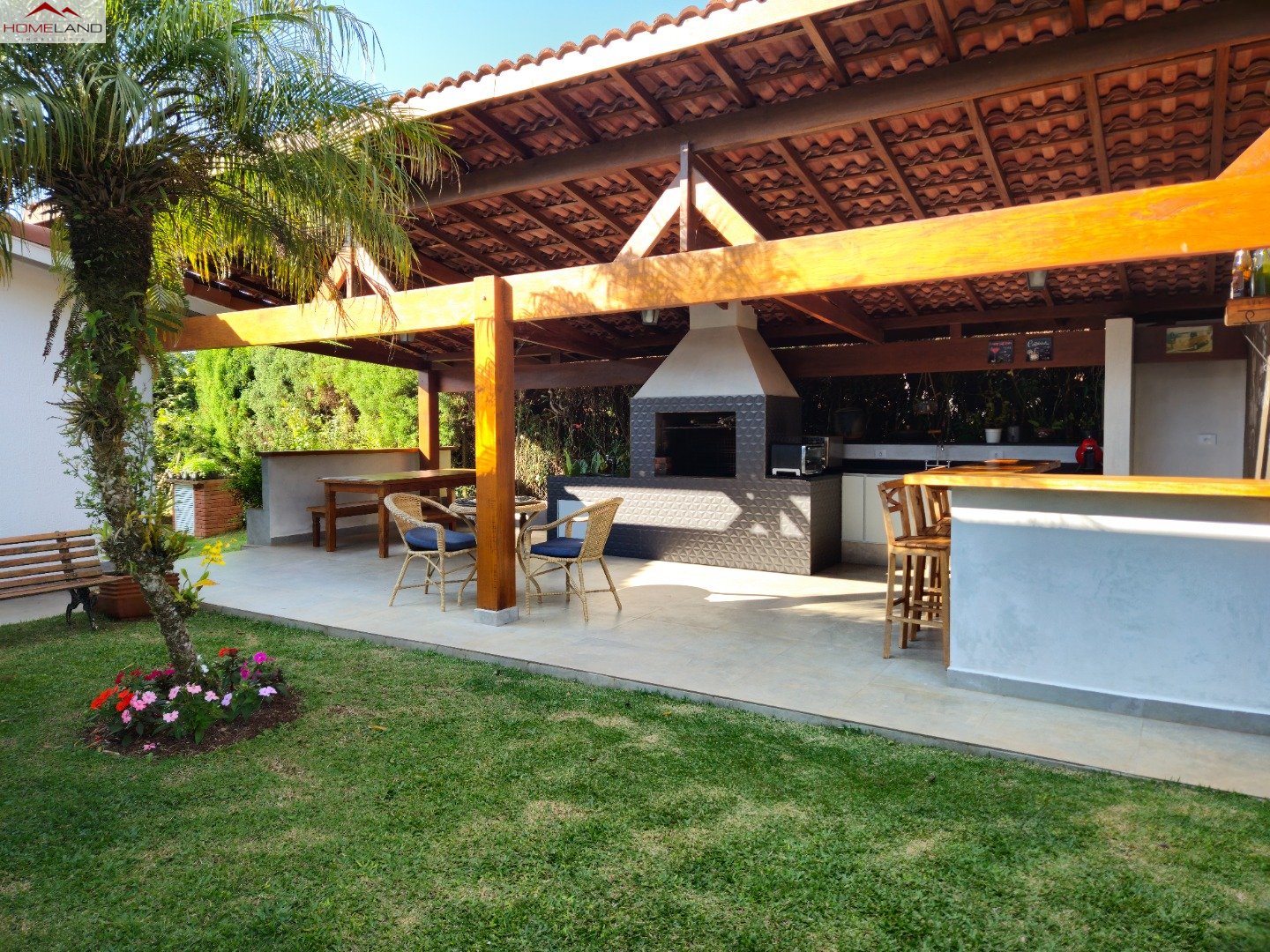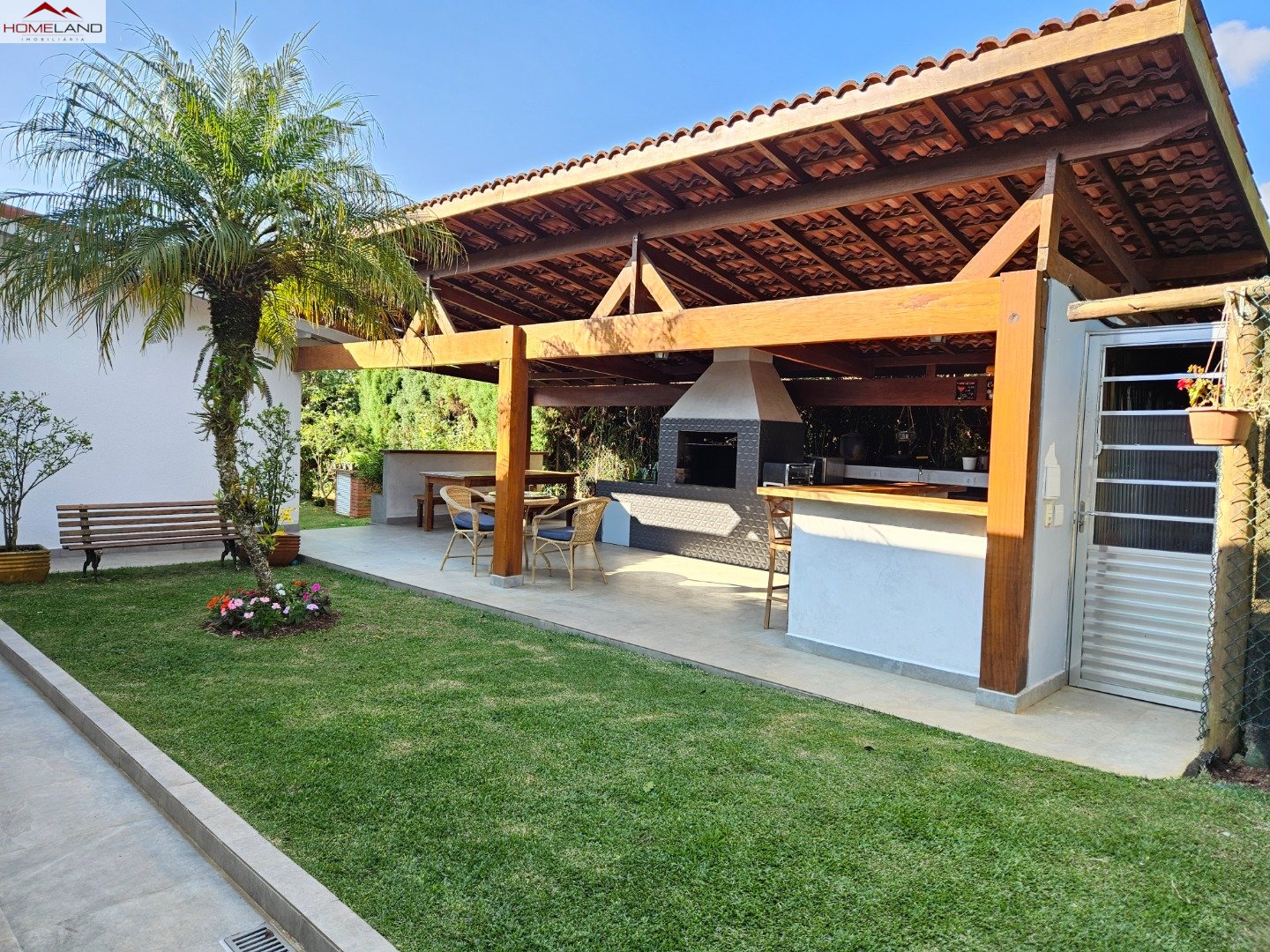 Imóvel à venda recém reformado, faltando apenas a reforma dos banheiros. A casa conta com sala ampla e bem iluminada três ambientes, lareira, bar todo equipado, sala íntima de televisão. Duas suítes principais e um quarto podendo ser revertido em uma terceira suíte (abrindo uma porta). Espaço em nível superior podendo ser usado para mais um quarto ou escritório. Cozinha com ilha, lavanderia, suíte completa para funcionário. Espaço gourmet com churrasqueira, bar, horta coberta e cercada, depósito, piscina/ piscina infantil. Gramado ao redor do imóvel com recanto e fogueira.