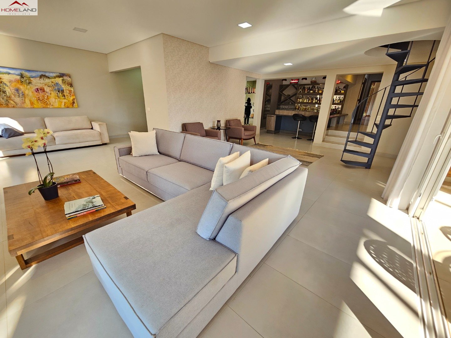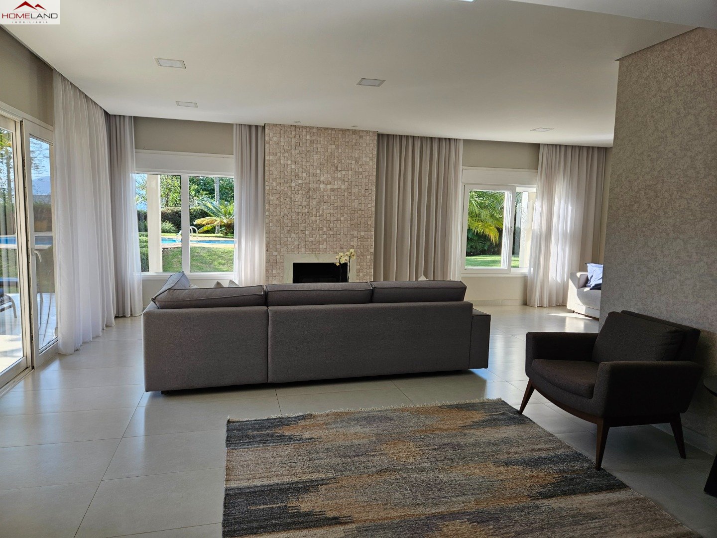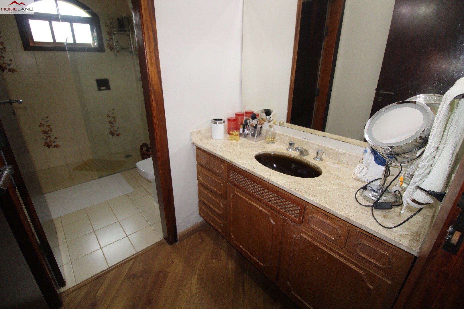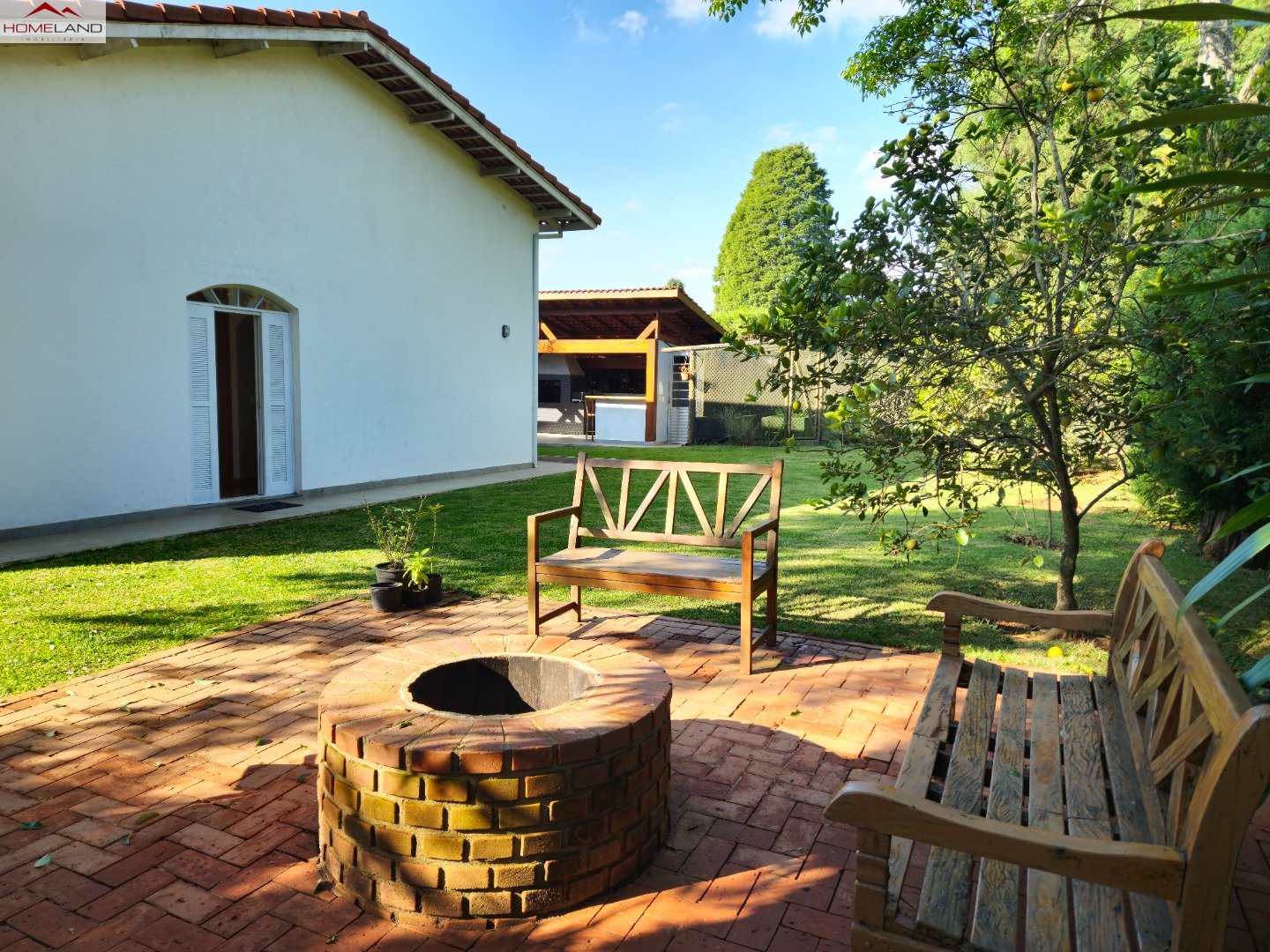 Imóvel à venda recém reformado, faltando apenas a reforma dos banheiros. A casa conta com sala ampla e bem iluminada três ambientes, lareira, bar todo equipado, sala íntima de televisão. Duas suítes principais e um quarto podendo ser revertido em uma terceira suíte (abrindo uma porta). Espaço em nível superior podendo ser usado para mais um quarto ou escritório. Cozinha com ilha, lavanderia, suíte completa para funcionário. Espaço gourmet com churrasqueira, bar, horta coberta e cercada, depósito, piscina/ piscina infantil. Gramado ao redor do imóvel com recanto e fogueira.