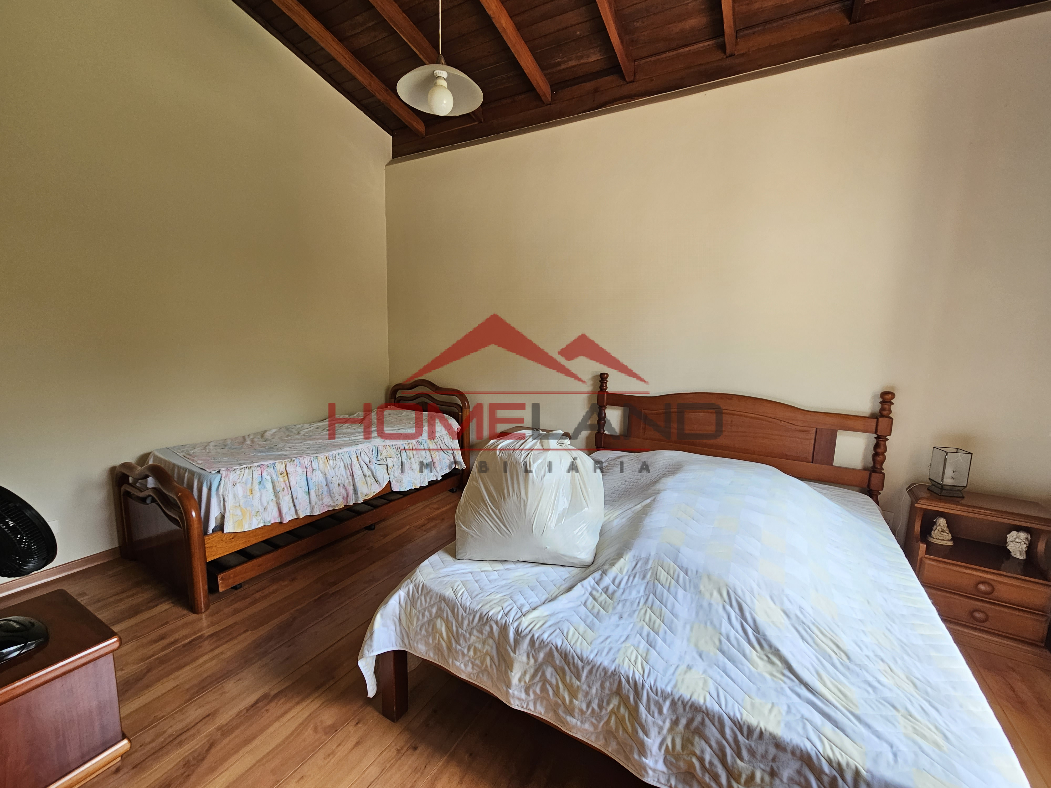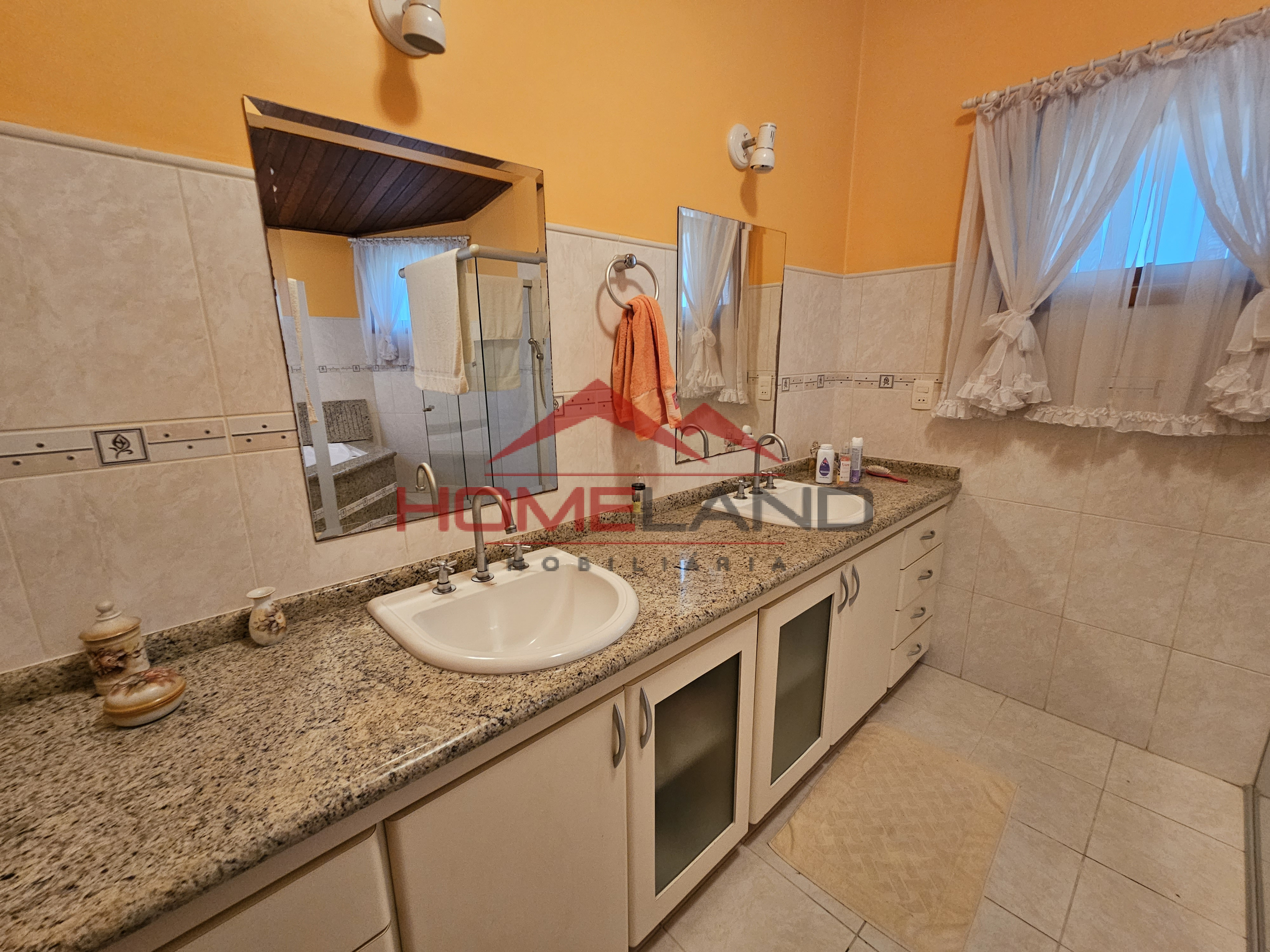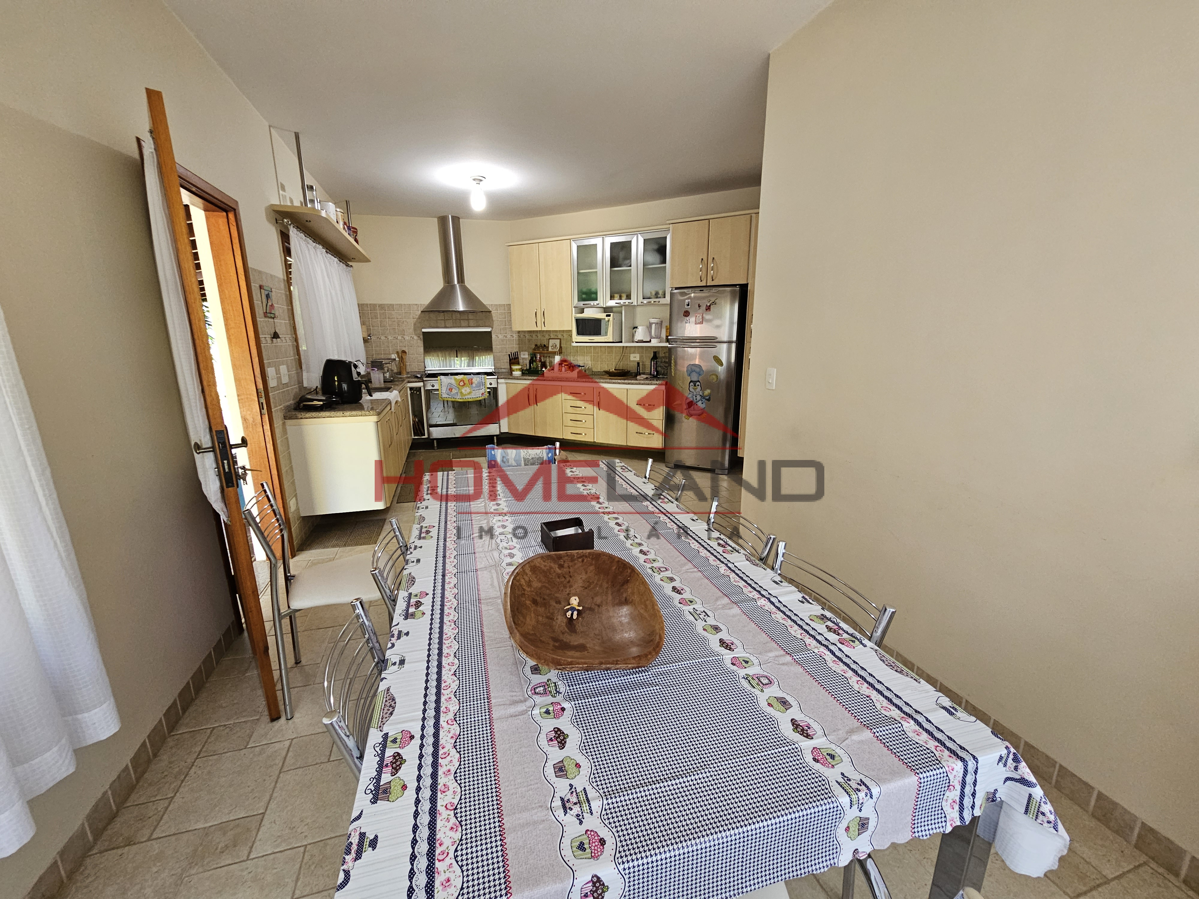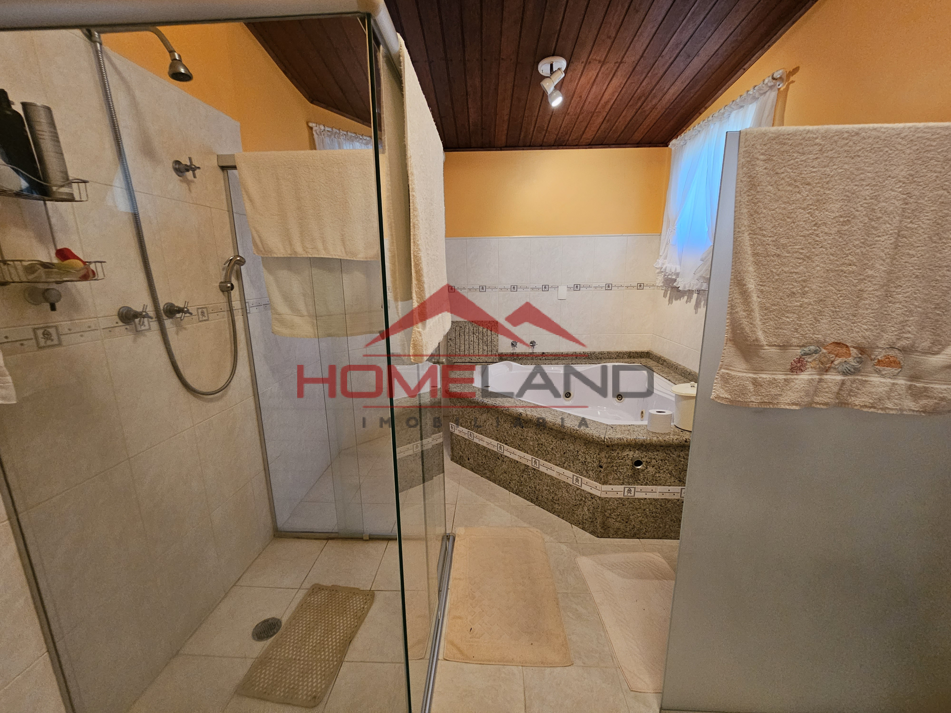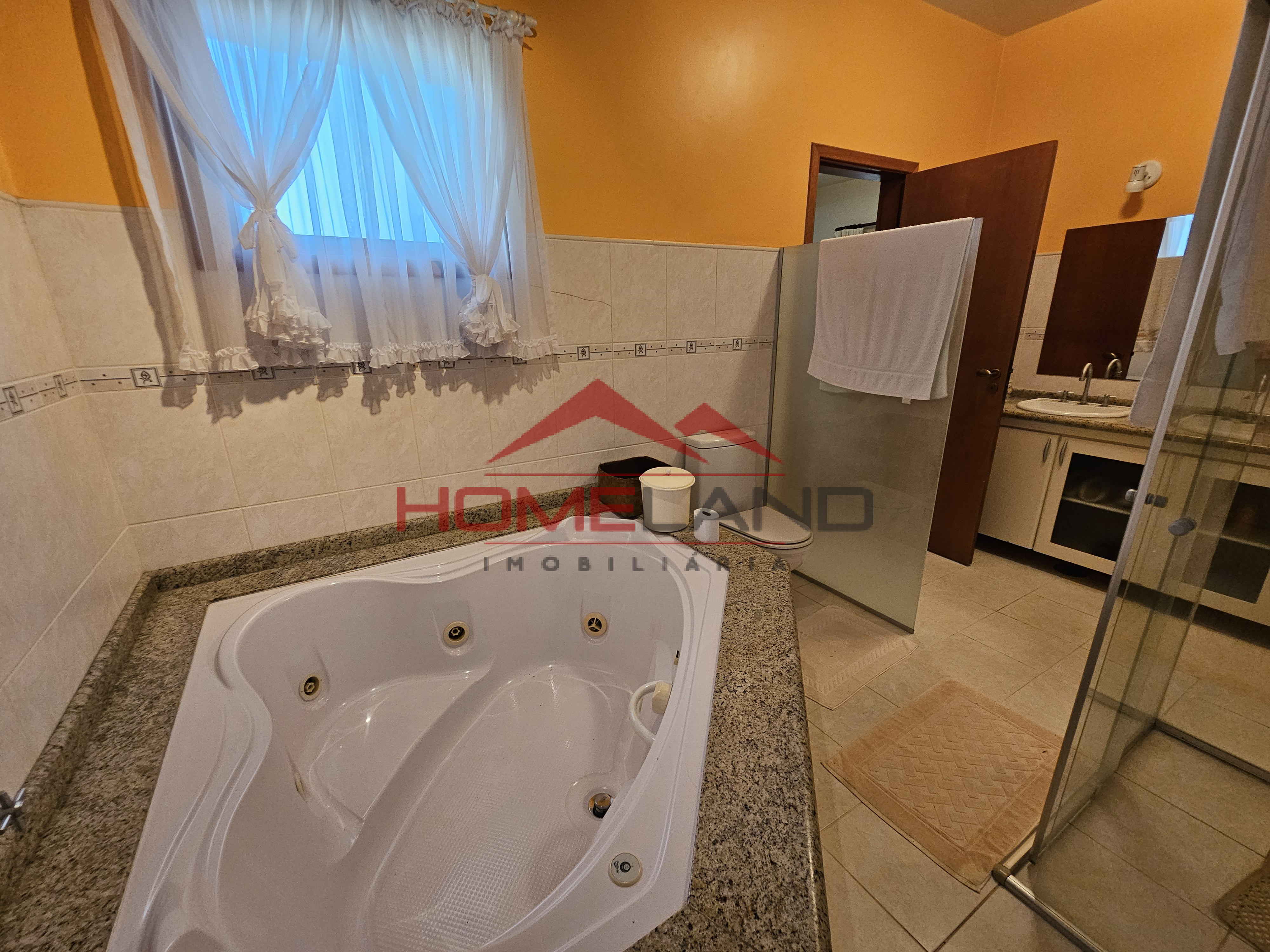 Com quatro dormitórios, sendo três suítes simples e uma suíte master com hidromassagem, a propriedade oferece espaços amplos, sala de estar, sala de lareira e sala home theater.