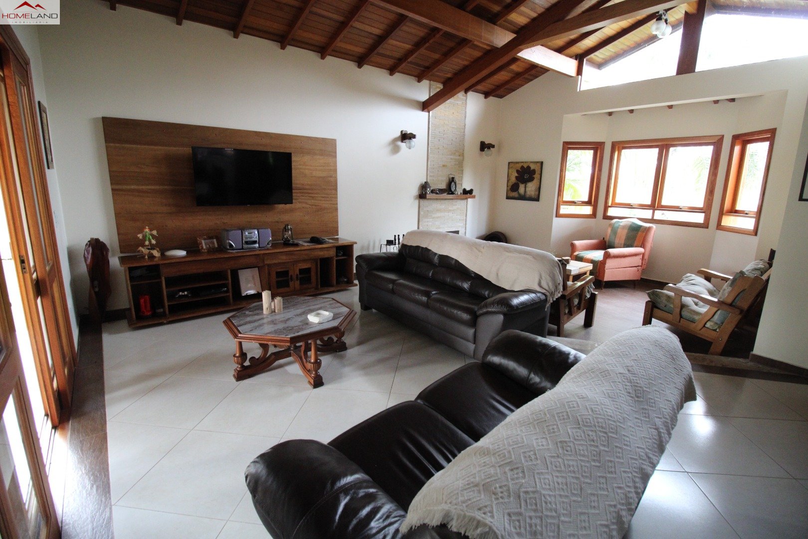 Imóvel à venda com 3 suítes, todas com abertura para varanda e gramado, suíte master com closet e escritório,dois dormitórios, banheiro social, sala três ambientes , lareira, lavabo diferenciado. Cozinha integrada, lavanderia, depósito. Área gourmet extensa e equipada contendo churrasqueira, sauna, salão de jogos, salão de festas, cozinha , deck, piscina. Gramado, horta e árvores frutíferas ao redor do imóvel.