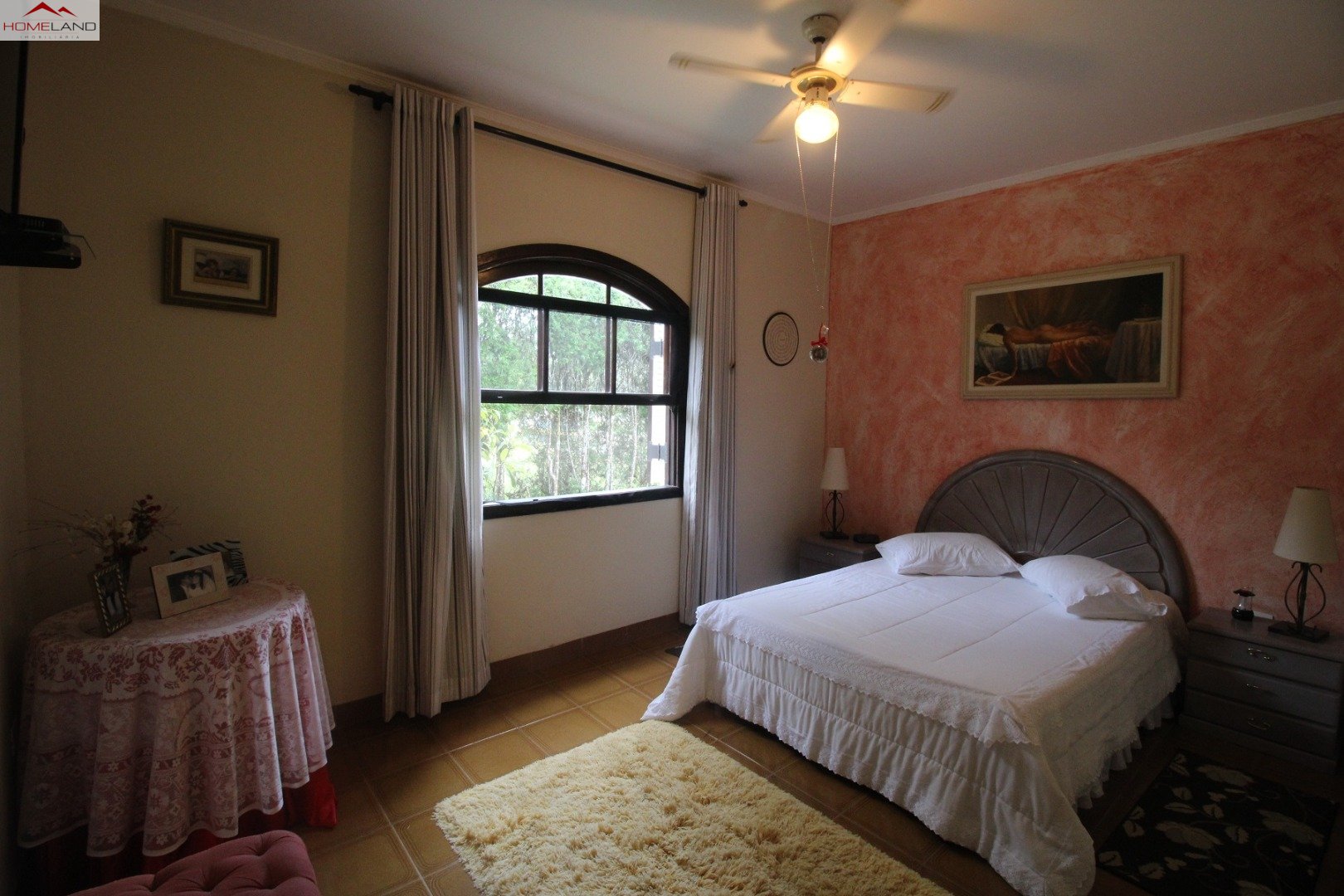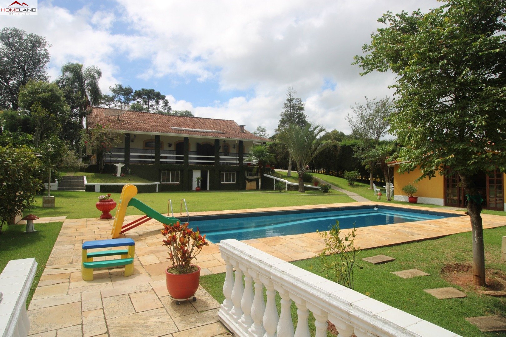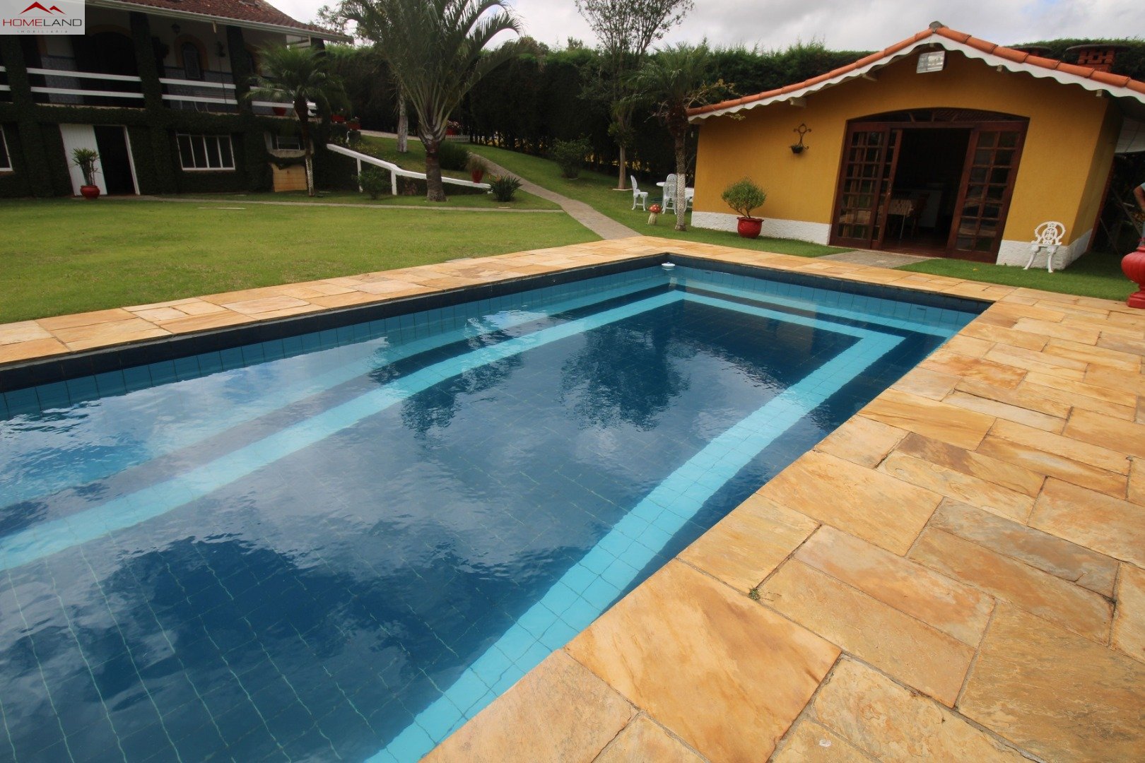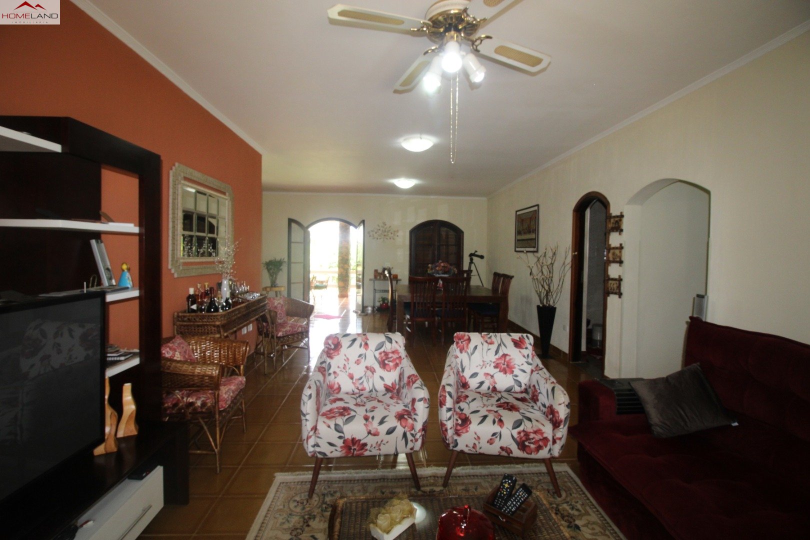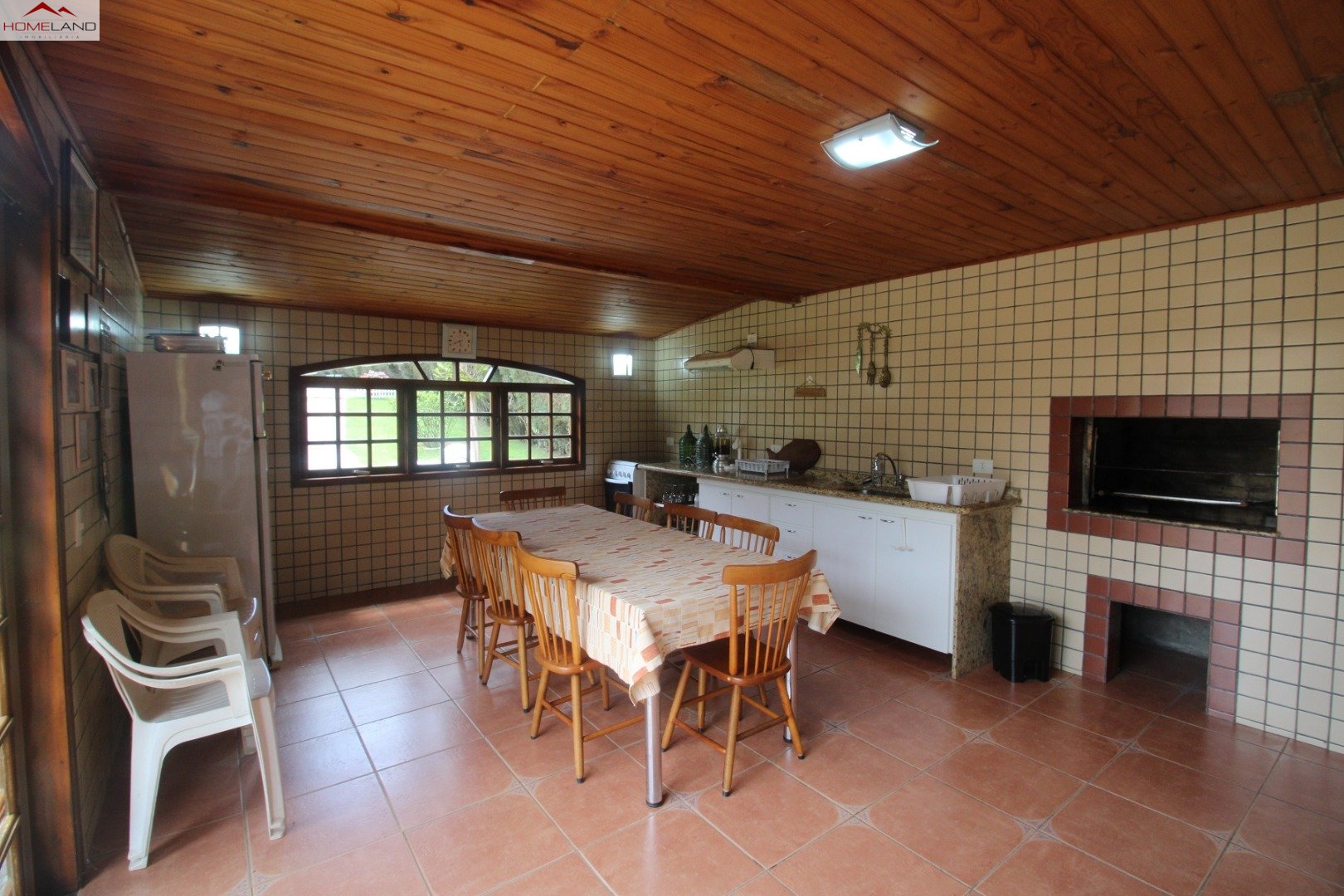 Casa de campo com área construída de 276 m² em um lote de 1.510 m² Ambientes muito amplos, sala de estar, sala de jantar, sala íntima com lareira Três dormitórios, sendo uma suíte com hidromassagem e closet, cinco banheiros, cozinha espaçosa com despensa, área de serviço, depósito. Extenso gramado e belo paisagismo, área gourmet com churrasqueira, forno de pizza, salão de jogos. Piscina, energia solar e garagem para 5 carros.