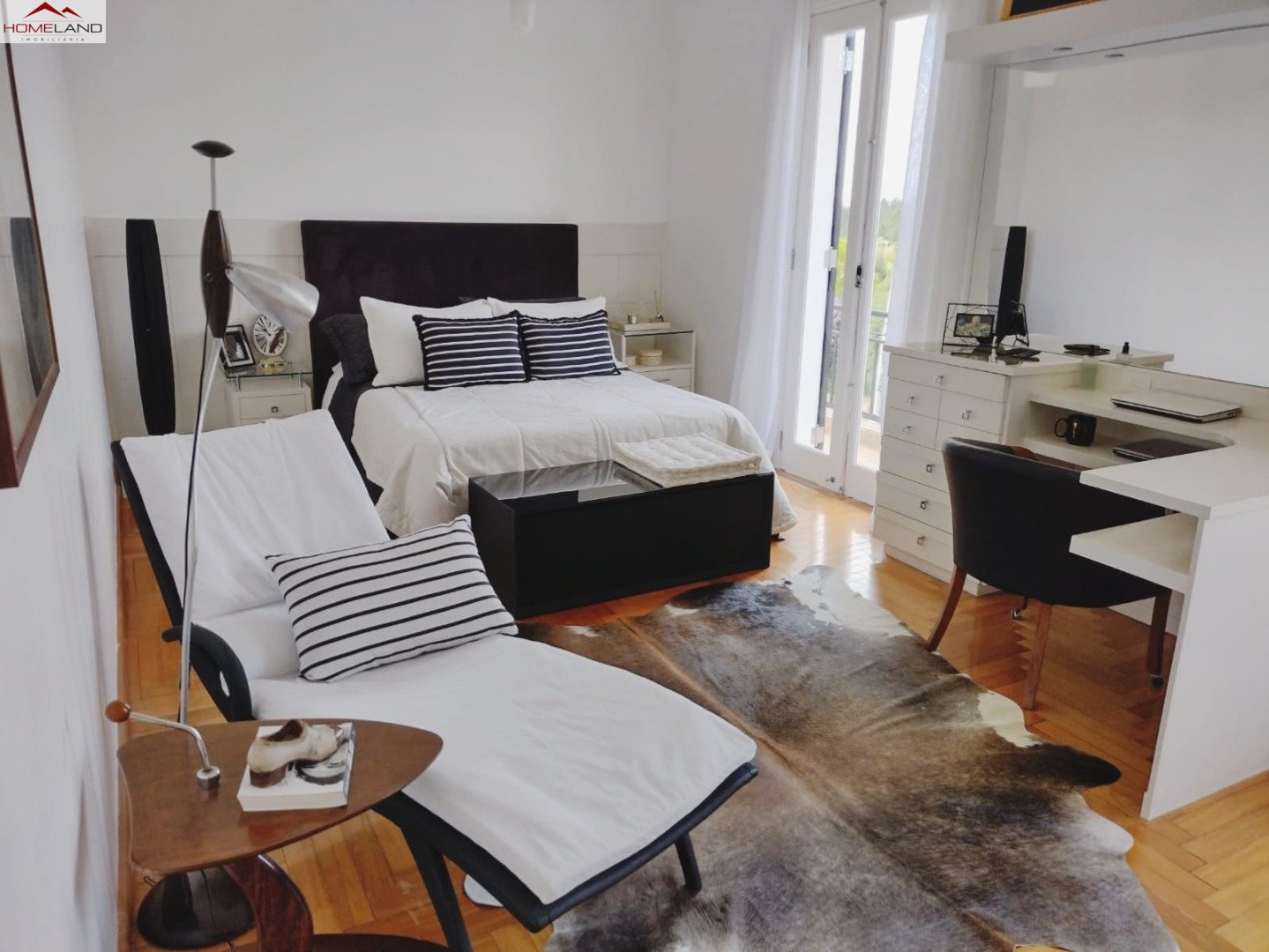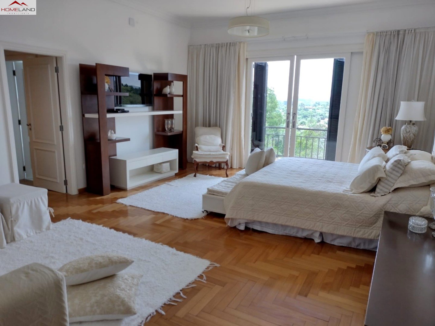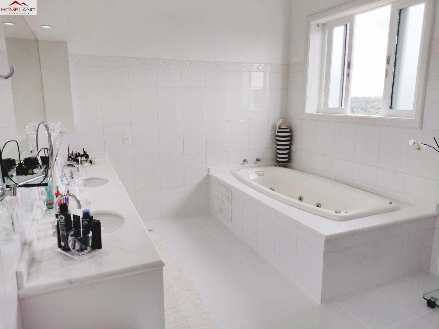 Excelente casa em estilo clássico, atemporal Terreno de 1500 m² e 489,84 m² de área construída Hall de entrada, ampla sala de jantar, sala de estar, lareira, home theater, piso em mármore Imóvel com três andares, acabamento em alto padrão e qualidade Cinco suítes com tacos de madeira parquet {espinha de peixe} , sacadas panorâmicas, vista 360°, closets com armários de madeira, 6 banheiros sendo 2 com hidromassagem e acabamento em mármore carrara Cozinha, área de serviço, dependência completa de empregada, despensa e depósito Área gourmet, com belo paisagismo , jardim e pomar Piscina, sauna Garagem para 6 carros.